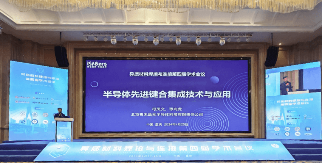 2024年4月24-26日,由哈尔滨工业大学等单位联合举办的“异质材料焊接与连接第四届学术会议”在重庆市隆重召开,北京青禾晶元半导体科技有限责任公司副总经理谭向虎受邀出席会议,并做题为《半导体先进键合集成技术与应用》的大会特邀报告。