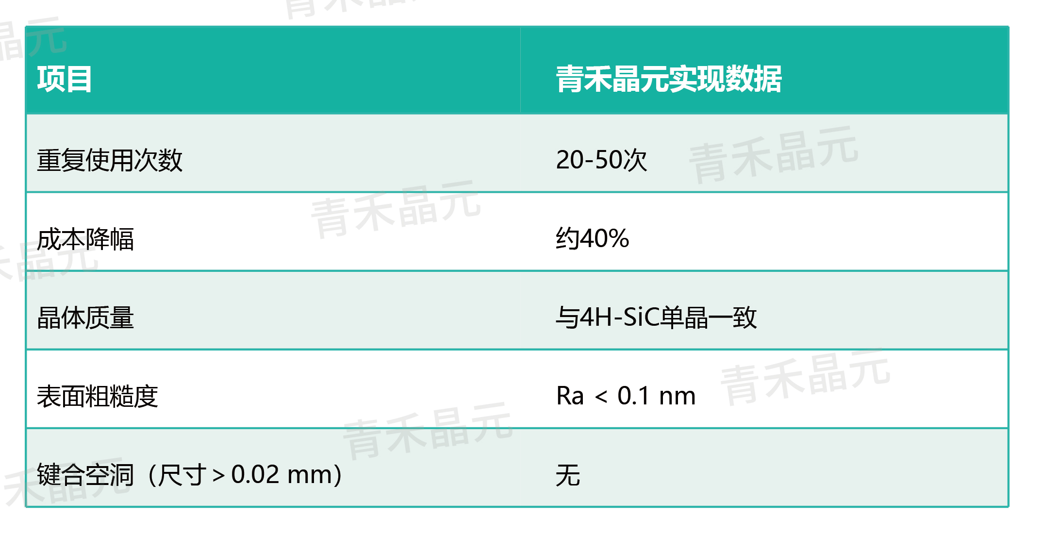 第一,在SiC上,青禾晶元将衬底重复使用次数推至20-50次,使复合衬底成本降低约40%,并在降低成本的同时实现了器件性能的提升。