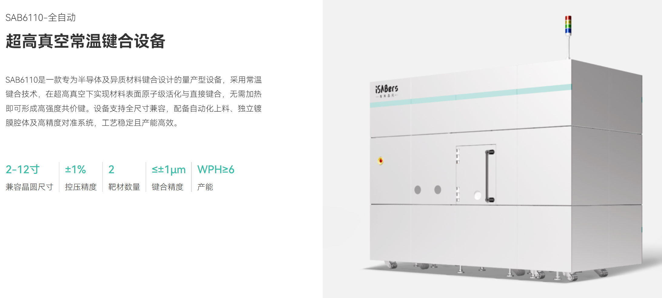 青禾晶元SAB6110设备,正是为破解这些核心挑战而生。它摒弃了传统热路径,以“超高真空” + “表面活化” + “常温键合” 的创新组合,开辟了一条全新的技术方向。