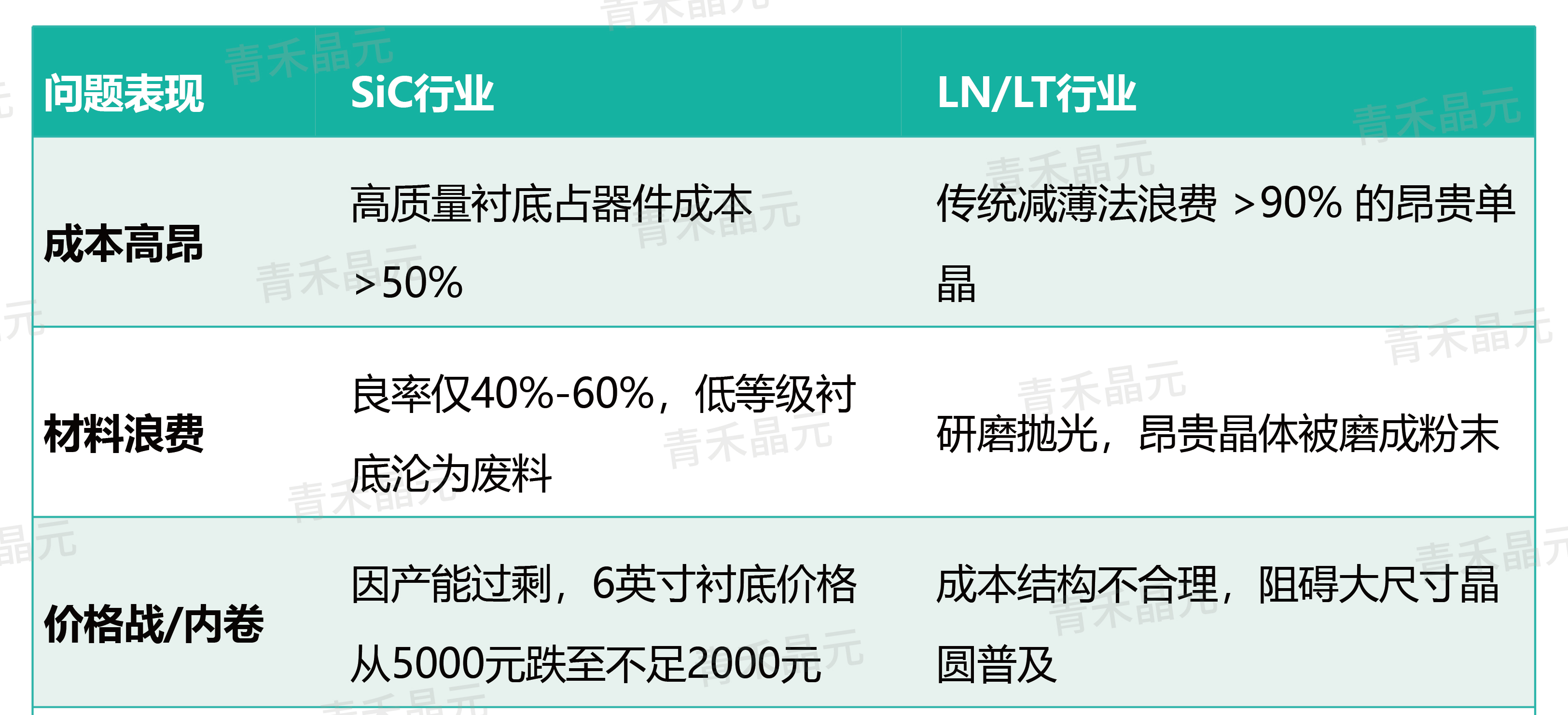 但在传统制造中,这些昂贵的材料要么被磨成废料(LN/LT减薄法浪费超90%),要么使用一次就被丢弃(SiC低良率导致大量浪费)。